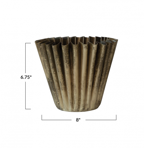 8\" Round x 6-3/4\"H Decorative Metal Fluted Planter, Antique Brass Finish (Holds 6\" Pot)