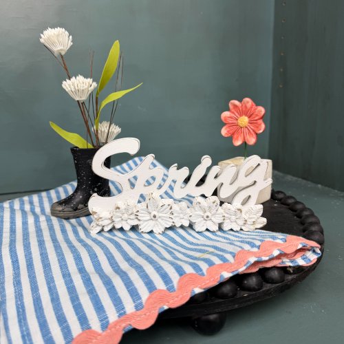 includes 4 items: SPRING sign, mud boot, flower stem, resign flower block
