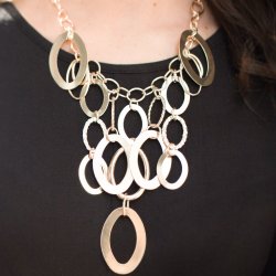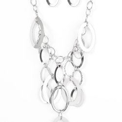 Large links and shimmering textured rings cascade below a chain freely, allowing for movement that makes a bold statement. Features an adjustable clasp closure.