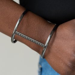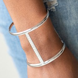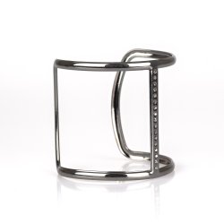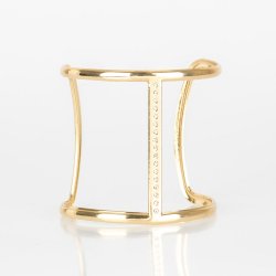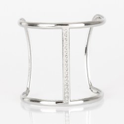 Glassy white rhinestones are encrusted down the spine of an airy cuff for an edgy look.