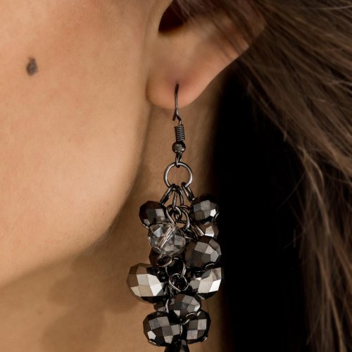 A collision of faceted crystal, hematite, and gem-like beading dangles from stacked rows of interconnecting gunmetal chains, creating a meshed fringe. Encrusted in prismatic hematite rhinestones, black beaded accents are sprinkled along the daring fringe, adding sassy shimmer to this haute head-turner. Features an adjustable clasp closure.