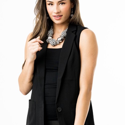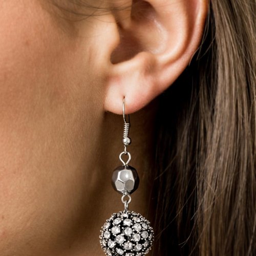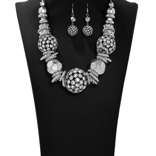 Oversized beads encrusted in rhinestones collide with textured silver hoops and large faceted silver beads in this jaw-dropping piece. The metallic accents and shimmering spheres increase in size as they inch towards the center, resulting in a statement piece that demands a doubletake. Features an adjustable clasp closure.